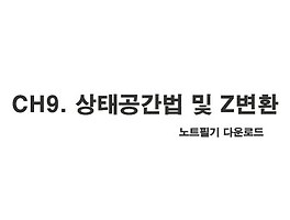 | CH9. 상태공간법 및 Z변환 (0) | 2021.01.26 |